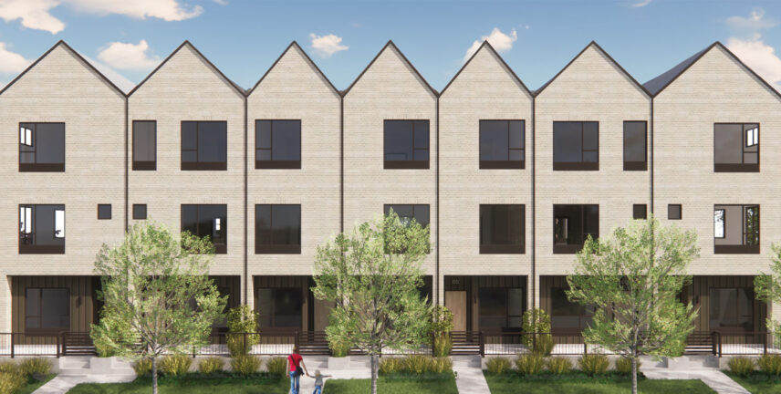 Strong, simple lines and pleasing symmetry characterize the townhomes proposed for Lansdowne. The minimalist exterior, with its neutral colour palette, articulated through traditional brick cladding, wood accents and generous windows, conveys a sense of cohesive timelessness and elegance. A considerate site vision aims to maximize greenspace and onsite tree retention with two three-storey buildings with an efficient footprint.